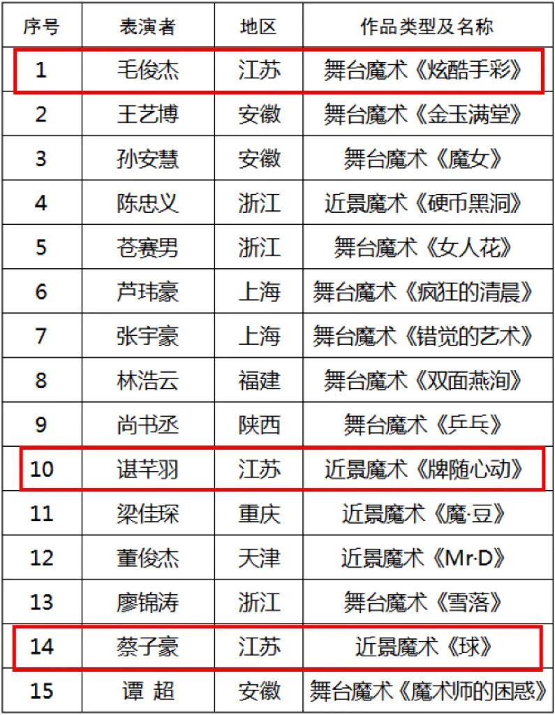 第十五届金手杖奖魔术比赛拟决赛作品公示,江苏3部作品在列