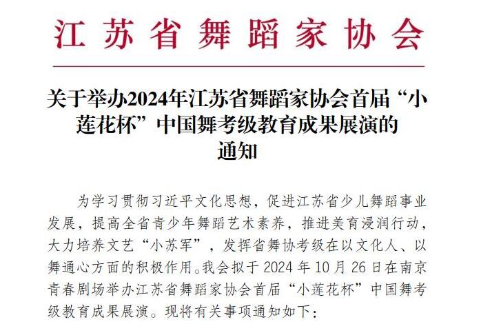 关于举办2024年江苏省舞蹈家协会首届“小莲花杯”中国舞考级教育成果展演的通知