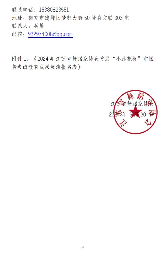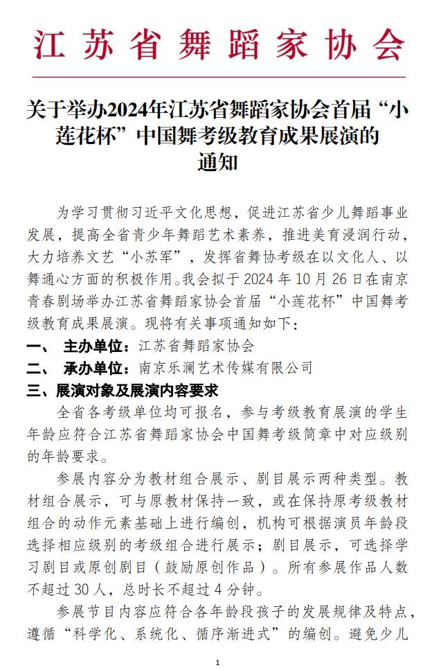 关于举办2024年江苏省舞蹈家协会首届“小莲花杯”中国舞考级教育成果展演的通知