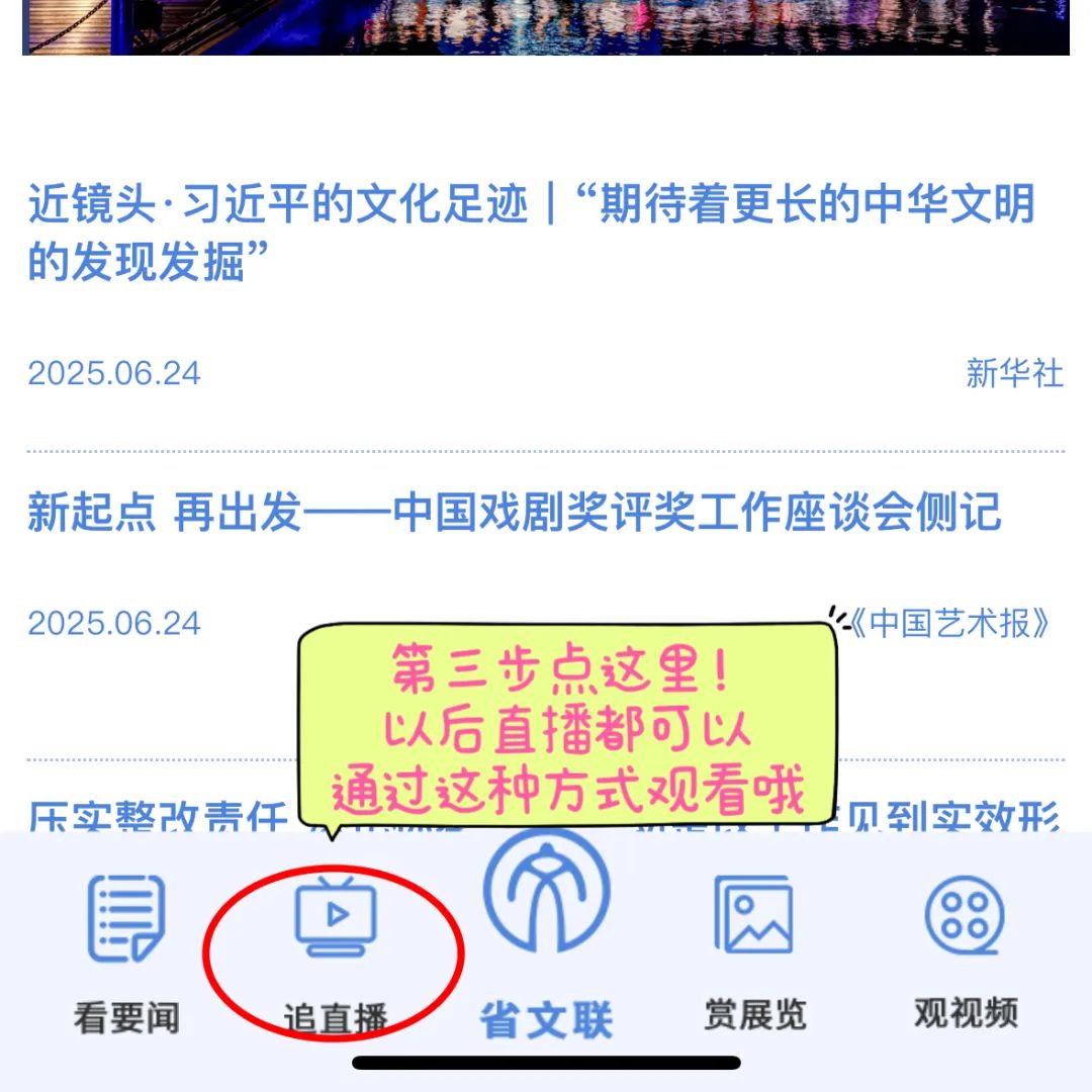 关注“江苏文联”微信公众号,点击左下角“文艺网”,再点击下方“追直播”