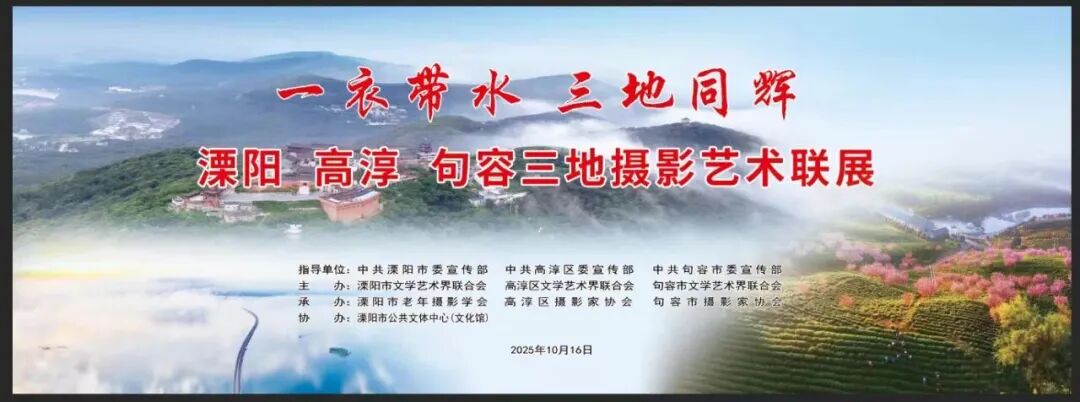 10月16日上午,溧阳、句容、高淳三地摄影联展在溧阳市美术馆举办。本次摄影艺术联展以“一衣带水·三地同辉”为主题,三地摄影人精心选送的120余幅佳作集中亮相,以镜头为笔、光影为墨,生动勾勒出江南山水的灵秀隽永与乡村振兴的时代新貌。