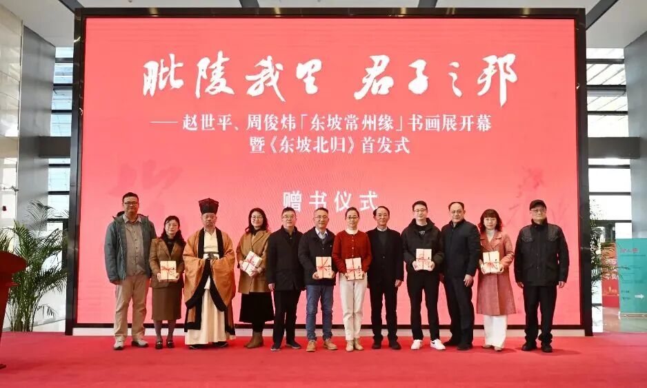 2025年11月29日上午,由中共常州市委宣传部指导,常州市文学艺术界联合会、常州市文化广电和旅游局主办,常州市苏东坡研究会、常州市美术馆承办的“毗陵我里 君子之邦 —— 赵世平、周俊炜‘东坡常州缘’书画展暨《东坡北归》新书发布” 活动举行。常州市政协副主席赵正斌,市委宣传部副部长、市新闻出版局(版权局)局长谢春林,市文联党组书记、主席沈玉俊,党组成员、副主席蒋志文,二级调研员周勇刚等出席活动,苏氏后人、文艺界代表、市苏东坡研究会会员及新闻媒体朋友齐聚一堂,共同见证这场融合书画艺术与学术研究的文化盛事。活动由常州美术馆馆长李庆主持。