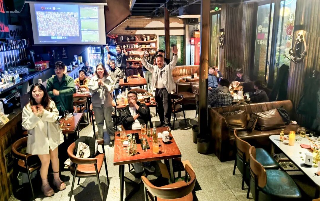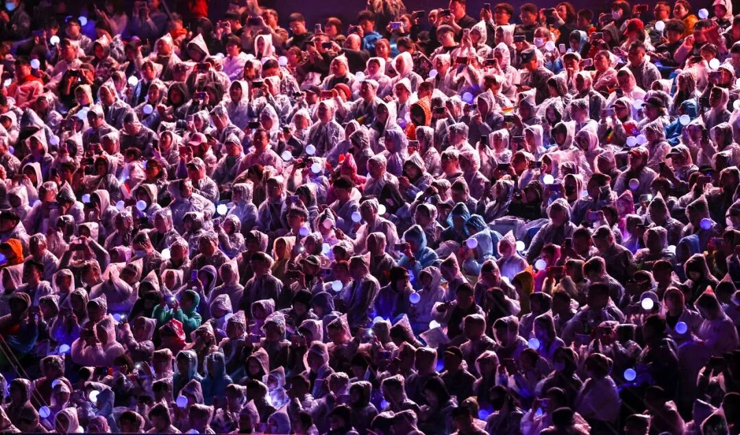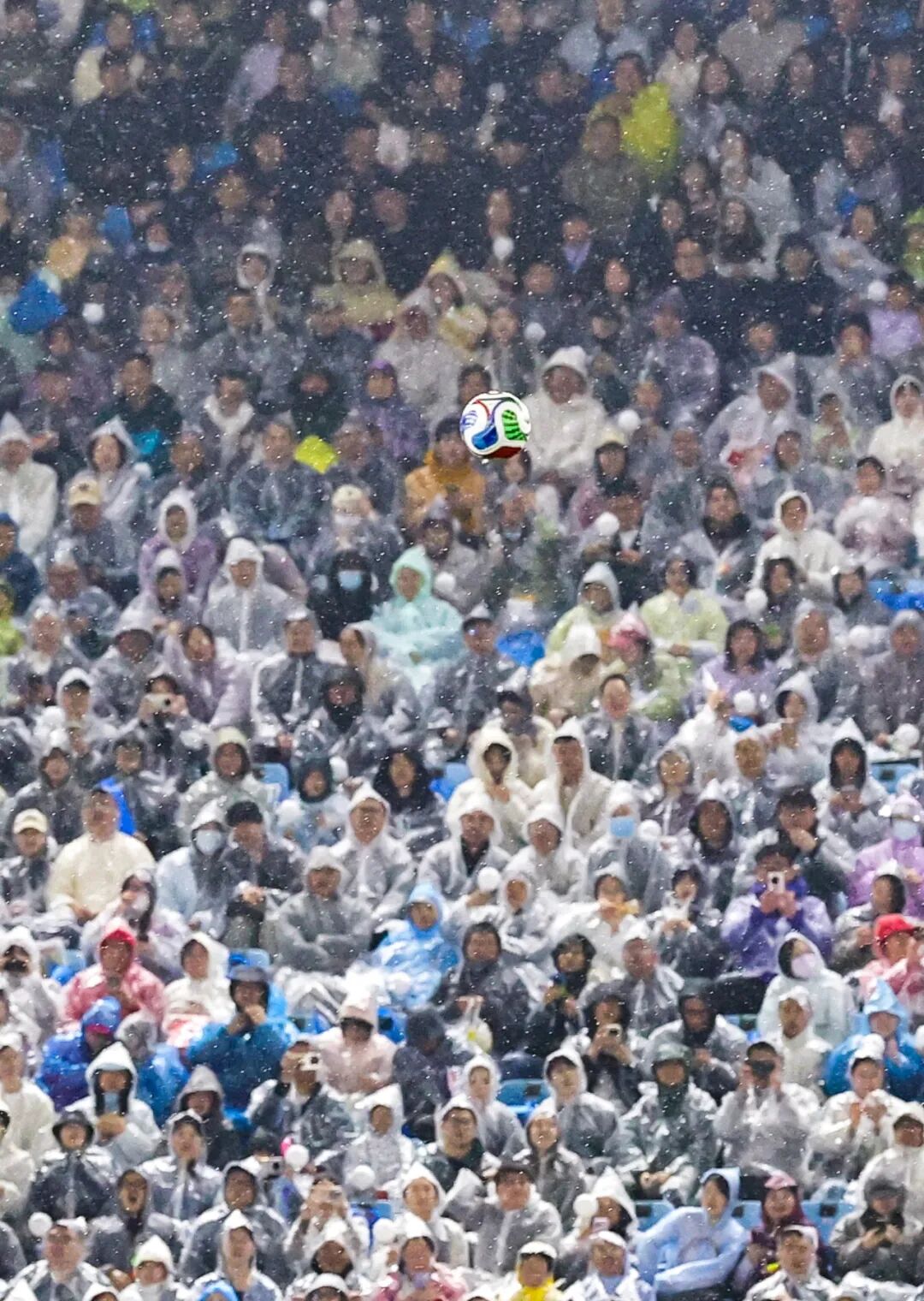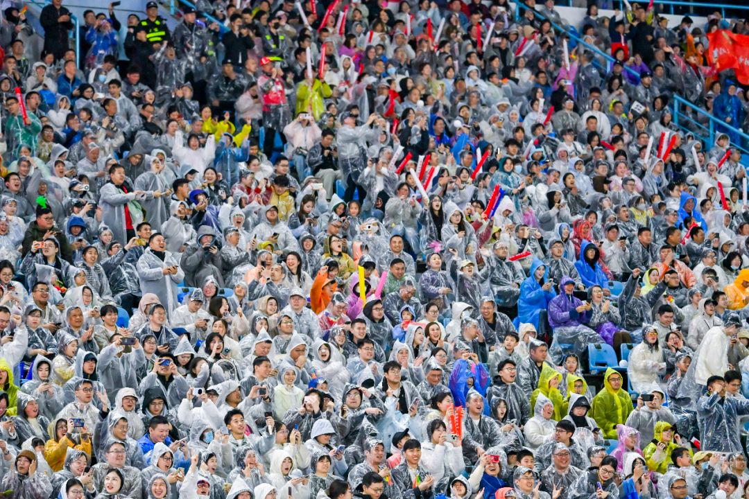全民观赛:城市广场设置“第二现场”,无数市民冒雨观赛,为家乡球队加油,全城沉浸在足球欢乐中。
