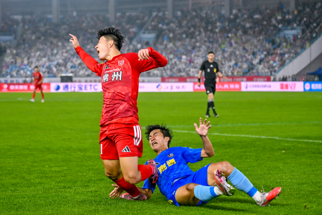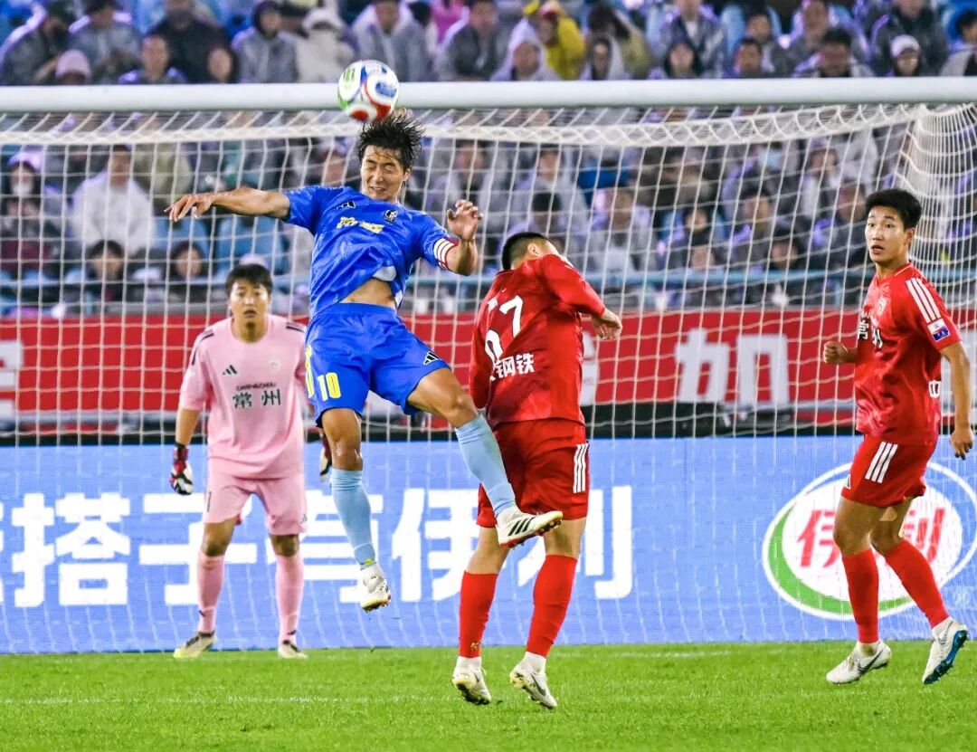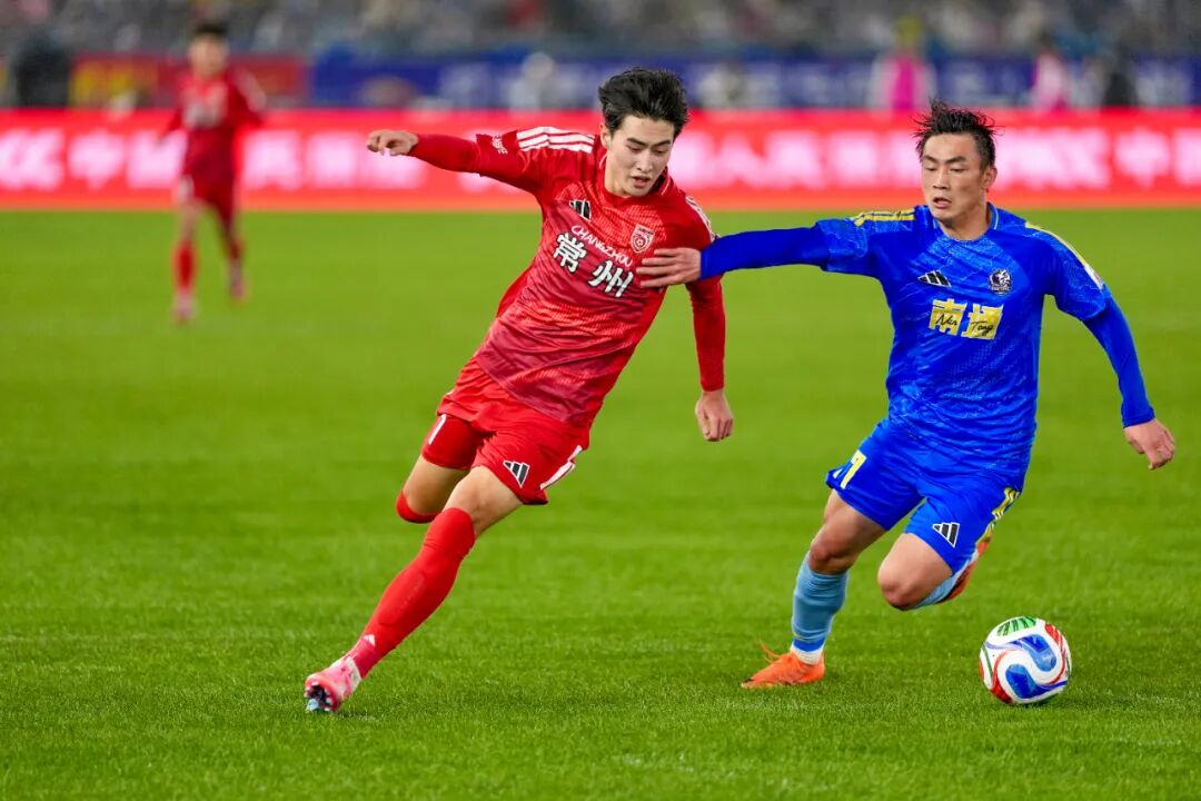 19:35,揭幕战正式打响。常州队坐镇主场,面对强敌敢打敢拼,全场攻势如潮,用实力书写逆袭篇章。赛场上,球员们奔跑、拼抢、射门,每一次攻防都扣人心弦;摄影师们穿梭看台与场边,用快门定格汗水与荣耀,记录属于常州的足球高光时刻。