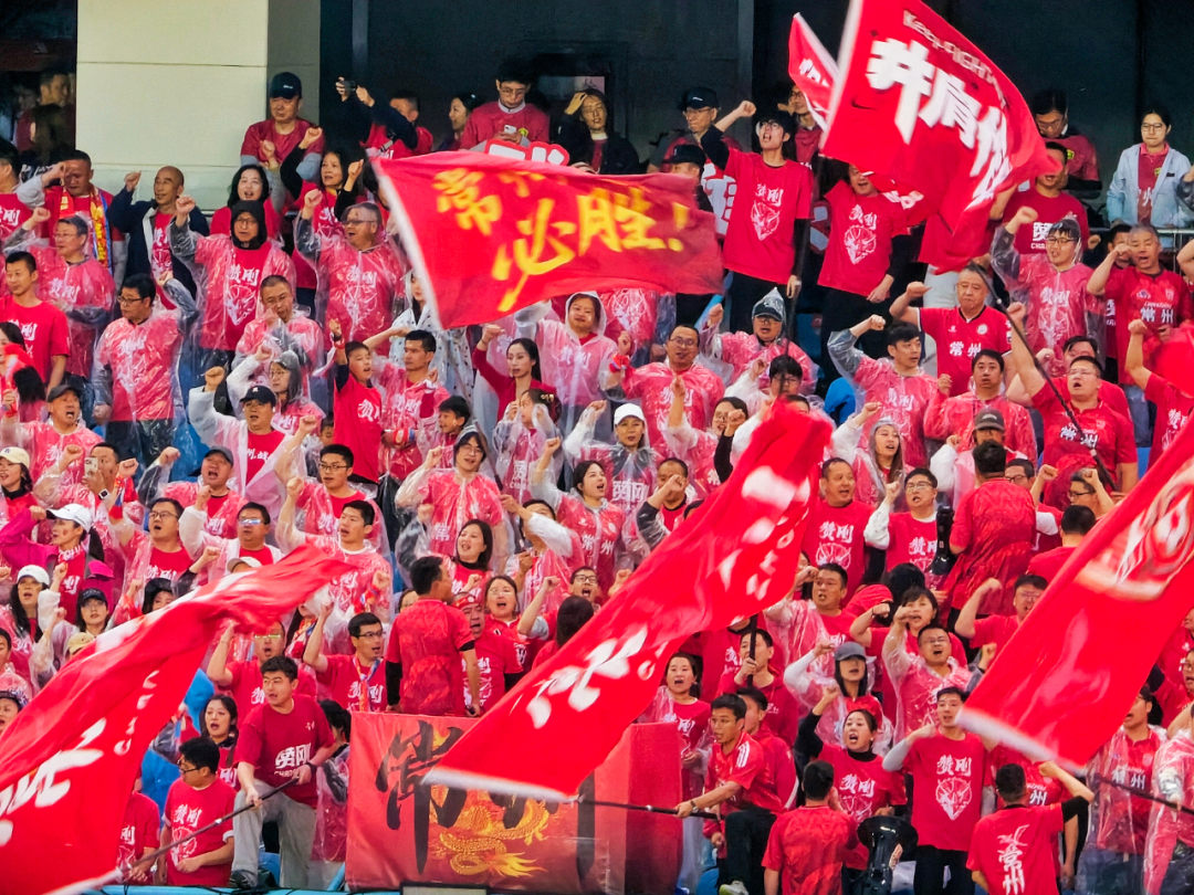 球迷狂欢:红色“常宝”球迷方阵气势如虹,呐喊声、助威歌、人浪此起彼伏,成为赛场最亮眼的风景。