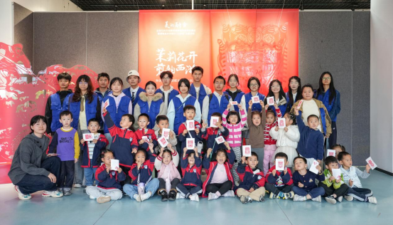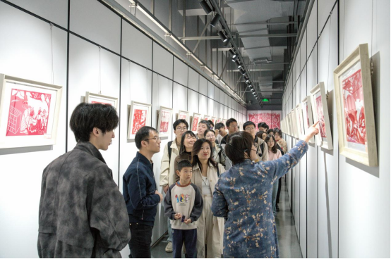 南京特殊师范学院大学生志愿者和幼儿园小朋友共同观展,沉浸式感受剪纸文化魅力