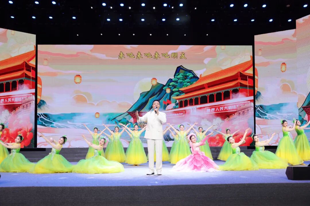 多首港城原创歌曲为晚会增添了独特的本土韵味。著名歌唱家李晖现场献唱港城原创歌曲《美丽家园》,歌唱家于乃久倾情演绎港城原创歌曲《赶上好时候》,悠扬的旋律、深情的演绎赢得全场阵阵掌声;青年歌手洛琦带来的《相拥在一起》节奏明快、灵动鲜活;《世界赠予我的》温情脉脉、治愈人心,《我和我的祖国》《大中国》等唱出了对祖国母亲的无限热爱与深深眷恋,形体表演《倾城·时光魅影》则以优美的肢体语言展现了港城的温婉雅致。整场演出巧妙串联起伊犁的豪迈奔放与港城的温婉秀美,在歌舞交融间展现了两地文化的独特魅力,彰显了多元一体的中华文化之美。现场气氛热烈,掌声、欢呼声此起彼伏。