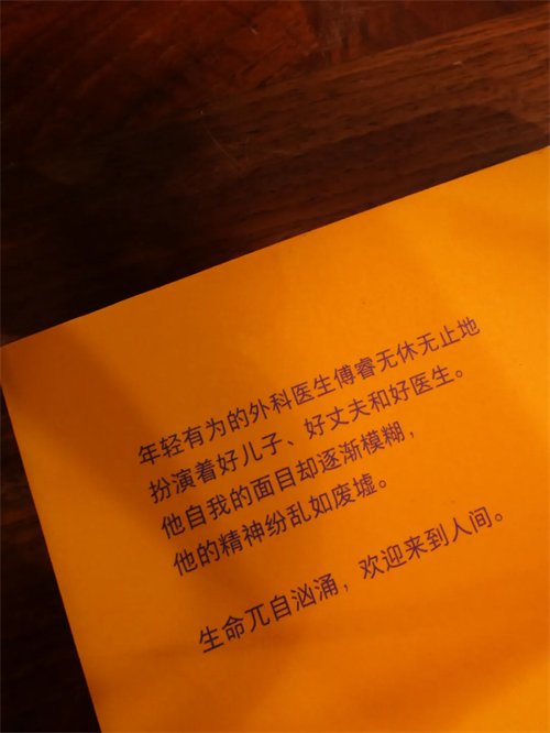 《欢迎来到人间》中,外科医生傅睿就过着两套相互矛盾的生活:他人眼中,傅睿年轻有为、家庭美满;独面自己,他只是在无休无止地扮演一个好儿子、好丈夫、好医生……久而久之,真实的自我早已模糊不清,貌似确定的生活向内坍毁。