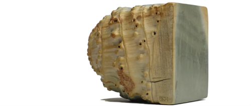 如所制竹节砚,砚身制成为一段自两端横切锯下的竹节,横平放之,其面稍作向下研磨作以研墨的砚池,而竹节的截面不是一次锯断,故而留下深浅不一的锔痕,在竹节的背面则琢如虫蛀斑驳之迹,而竹节纤维的纵向如同自然干枯而脆裂,这一处处的摹刻与细化,不仅仅体现的是工之细腻,更是体现出雕刻者对大自然细心观察以及对生活的切身感受与感悟。若不是用心去体验生活,感受大自然的美,是无法创作出如此细腻、富有自然之趣的美好作品的。