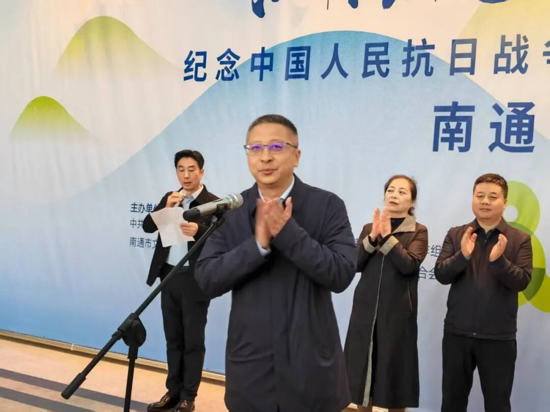 南通市文联党组书记、主席张华重点介绍了展览背景与特色——作为南通“江海艺境”品牌巡展的又一重要站点,本次展览紧扣抗战胜利80周年主题,通过两地书画艺术对话,传承红色基因,促进文化交融。