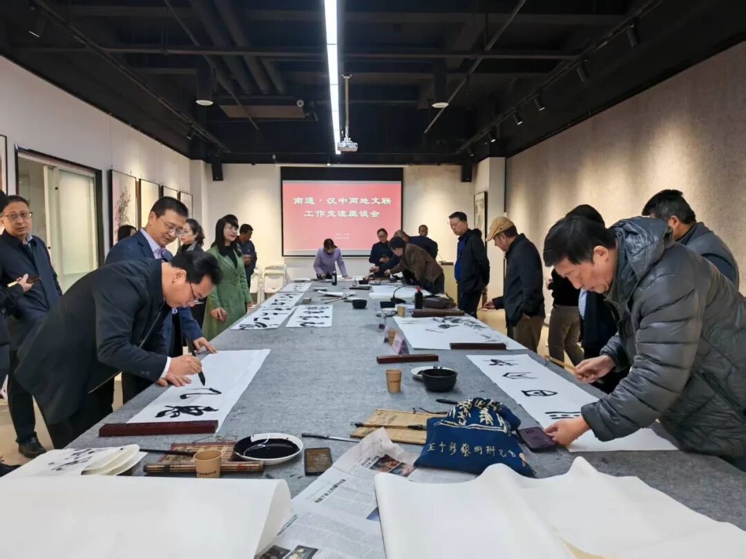 当天,南通市文联与汉中市文联召开工作交流会,围绕两市文联基本情况、人才培养、品牌活动打造等内容展开探讨,进一步深化了合作机制,共谋两地文艺发展新路径。同时,两地书画家现场进行了书画创作交流。