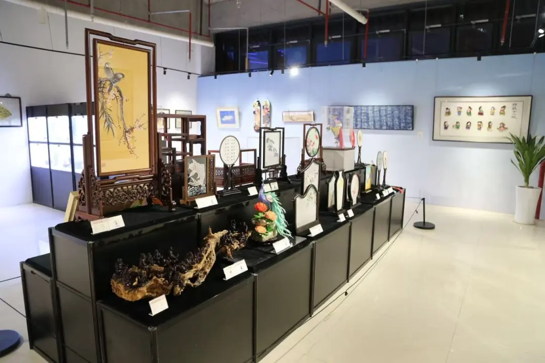 苏州市民间工艺精品展(“文艺两新”专场)吸引了大批市民驻足。展览共展出217件(套)工艺精品,涵盖织绣、雕塑、工艺家具、金属工艺等10大门类,囊括刺绣、缂丝、蓝印花布、玉雕、砖雕、核雕、竹刻、剪纸、红木家具、仿古铜器、农民画、麦秸画、金属錾刻、陶艺、手工编织、苏扇、漆艺、铜器等50个民间工艺品种,集中展现了苏州民间工艺的创新成果。更值得一提的是,这些作品背后汇聚了中国民间文艺最高奖“山花奖”获得者6人,中国工艺美术大师3人、省级工艺美术大师6人,以及国家级非物质文化遗产项目国家级代表性传承人5人、省级非物质文化遗产项目省级代表性传承人7人。