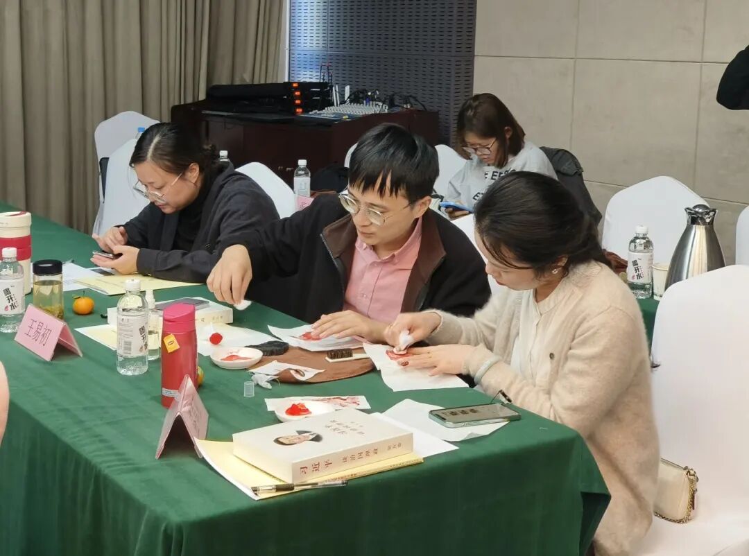 下午的课程别开生面,金石传拓非遗传承人沈峰枫老师带领学员们开展“守正创新,用纸墨穿越千年”金石传拓体验活动。学员们在沈老师的指导下,亲手操作传拓工具,将古老碑刻上的文字和图案一点点清晰地复刻在宣纸上。在这一过程中,大家传统文化的独特魅力和深厚历史底蕴,也对“守正创新”这一文艺创作的重要原则有了更深的体会。