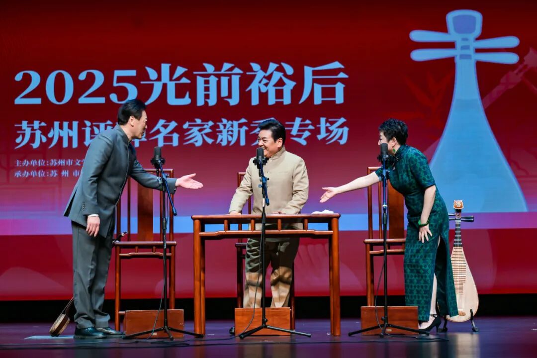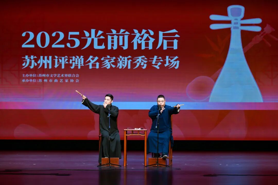 为全面践行习近平文化思想,贯彻落实党的二十大及二十届历次全会精神,积极推动苏州评弹的传承与发展,充分发挥曲艺名家的示范引领作用和展示优秀中青年演员的风采,通过优质文艺资源直抵基层的切实行动,为苏州文化强市建设注入强劲活力,11月20日下午,由苏州市文学艺术界联合会主办,苏州市曲艺家协会承办的2025“光前裕后”苏州评弹名家新秀专场演出在苏州开明大戏院成功上演,近千名观众走进剧场,共赴曲艺盛宴,现场欢呼声此起彼伏,掌声如雷。