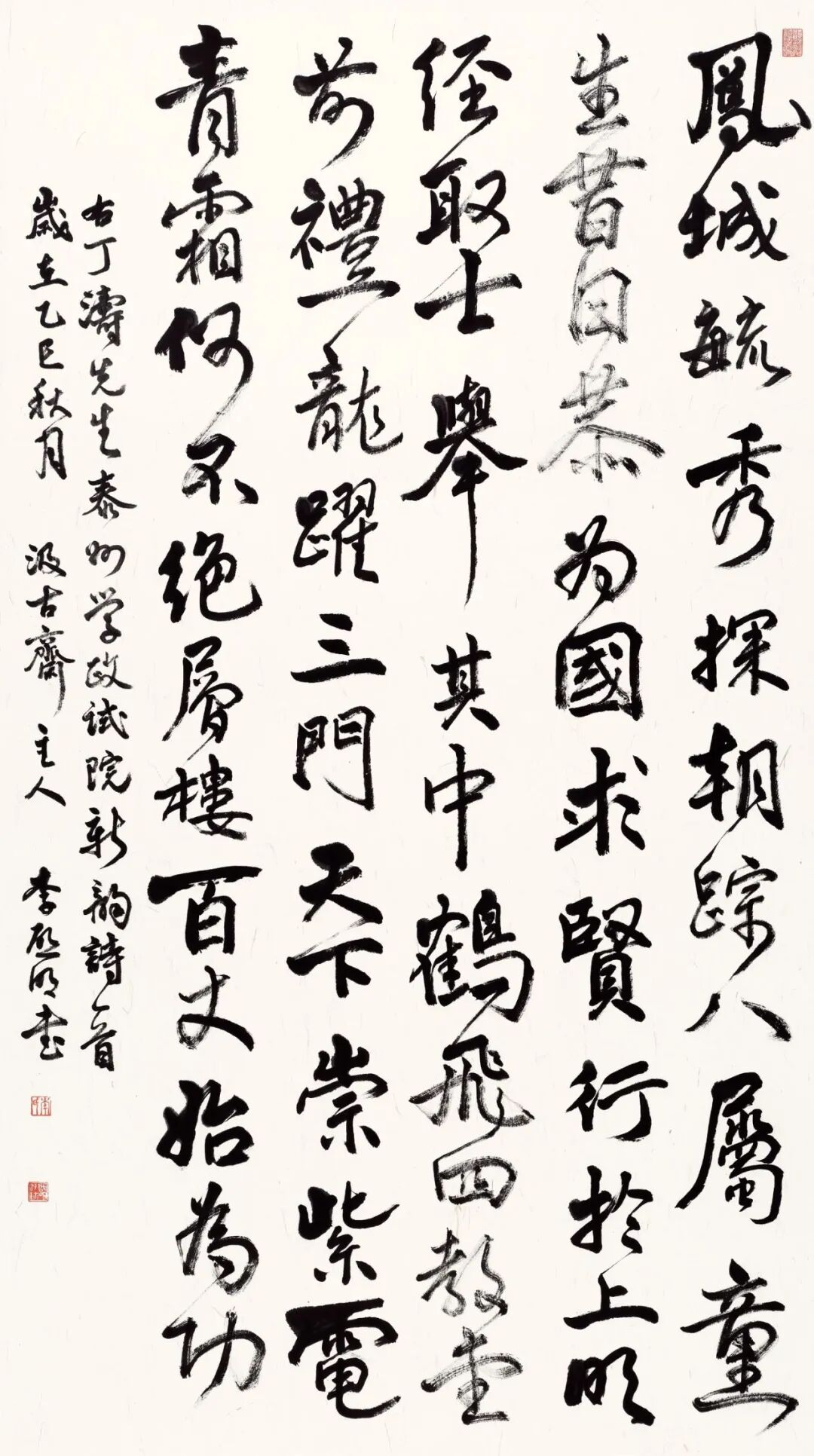 曹茂良表示,入展的70位诗人联家心怀对故土的赤子之情,在这片历史厚土、文化沃土、发展热土上,把凤城河的清波、望海楼的月色、千垛菜花的绚烂、梅兰芳的水袖,都一一化作笔端流淌的旋律,通过更多有筋骨、有道德、有温度的作品,深情抒写泰州人民奋斗之志、创造之力、发展之果,主动地“向外拓展”,积极探索诗词书法与旅游、科技、教育等领域的深度融合,为提升“人文‘三水’”贡献更为多元、更加绚烂的传统文化力量。