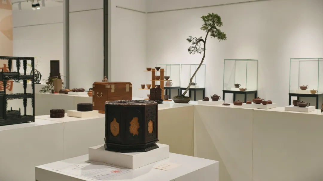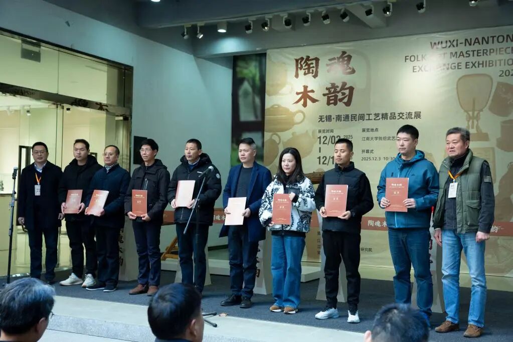 12月3日,由江苏省民协、无锡市文联、南通市文联主办,无锡市民协、南通市民协承办,江南大学设计学院、江南大学中国紫砂艺术设计研究院、宜兴紫砂九隽陶艺有限公司协办的“陶魂木韵”——无锡·南通民间工艺精品交流展在江南大学钱绍武艺术馆开幕。
