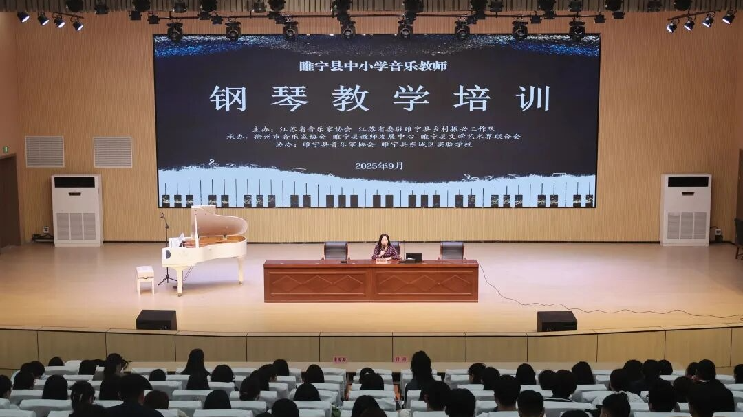 9月28日至29日,由江苏省音协主办,徐州市音协、睢宁县教师发展中心、睢宁县文联承办的江苏省音协钢琴考级指导教师培训班在睢宁成功举办。培训班以“精准赋能、实操提效”为核心理念,面向睢宁县百余名基层钢琴教师(含新文艺群体)开展专项培训。通过系统化课程与专家面对面指导,着力提升参训教师的钢琴教学能力与演奏水平,为全省音乐教...