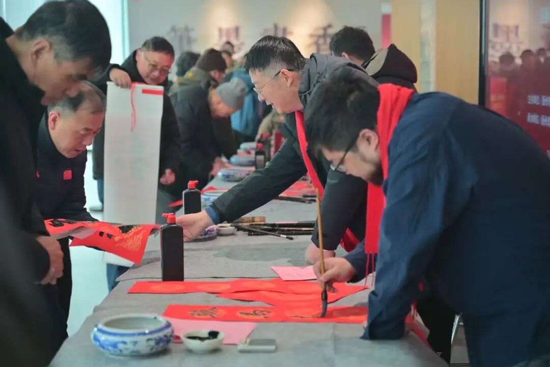 红纸铺展承文脉,笔墨飘香迎新春。1月24日上午,扬州非遗珍宝馆一楼大厅内翰墨氤氲、喜气盈盈,由扬州市文学艺术界联合会主办,扬州非遗珍宝馆与市书法家协会共同承办的2026新春特别行动在此举行。扬州市文联党组书记、主席黄振宇,市文联三级调研员、市书法家协会主席朱红林等领导,何业栋等6位书法家及附近居民们共同参与活动。这场以“非遗+书法”为核心的文化盛宴,让市民在马年新春收获真挚祝福。