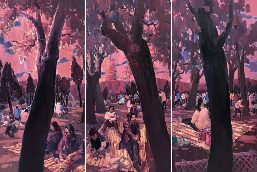 《红霞掩映下的公园》油画 赵康