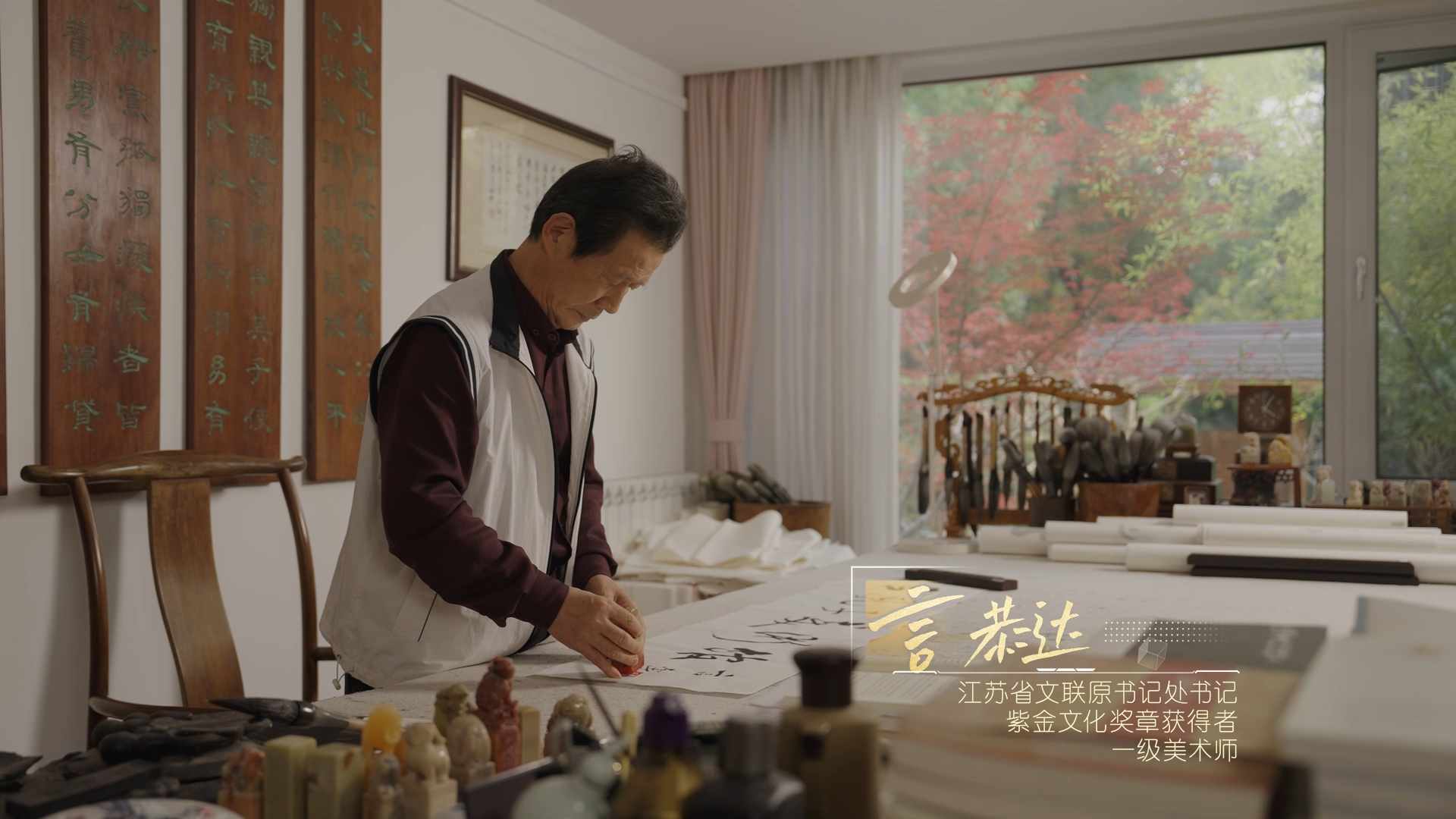 “要将江苏文艺品牌推向大众,服务于民。”江苏省文联原书记处书记、紫金文化奖章获得者、一级美术师言恭达,致力于书法艺术在当代的推广和传承,为高等书法教育事业的发展,以及艺术人才的培养作出重要贡献。他的书法创作扎根优秀传统文化,感知时代,弘扬中华美学精神。有着深厚的笔墨功底、全面的艺术修养和广泛的艺术影响力。
