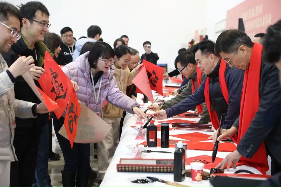 同期,在中国电子科技集团公司第二十八研究所,江苏省书画院院长徐燕,南京师范大学博物馆馆长、文化艺术研究院执行院长方淩波,省直书协秘书长荀海,江苏省青少年书画协会会长、省现代美术馆副馆长潘永斯等10位书法家,为科研人员创作春联与“福”字。现场纸墨飘香,一幅幅作品不仅承载着新春的喜庆,更寄托了对科技工作者勇攀高峰、创新奉献的美好祝愿。