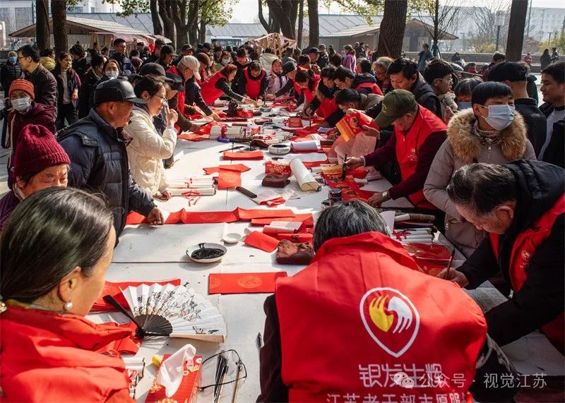 1月25日,昆山市老年书法家在玉山广场开展免费写春联、送祝福迎新年活动,吸引了很多市民。唐凤元摄