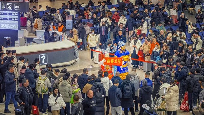 春运第一天,文广旅为返乡人送上苏州人的祝福。孙贺摄