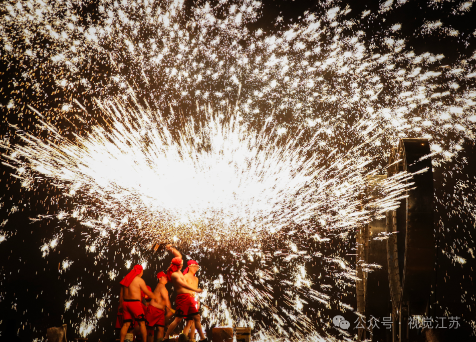 2月10日晚,常州市春秋淹城景区的非遗打铁花表演精彩纷呈。张品阳 摄