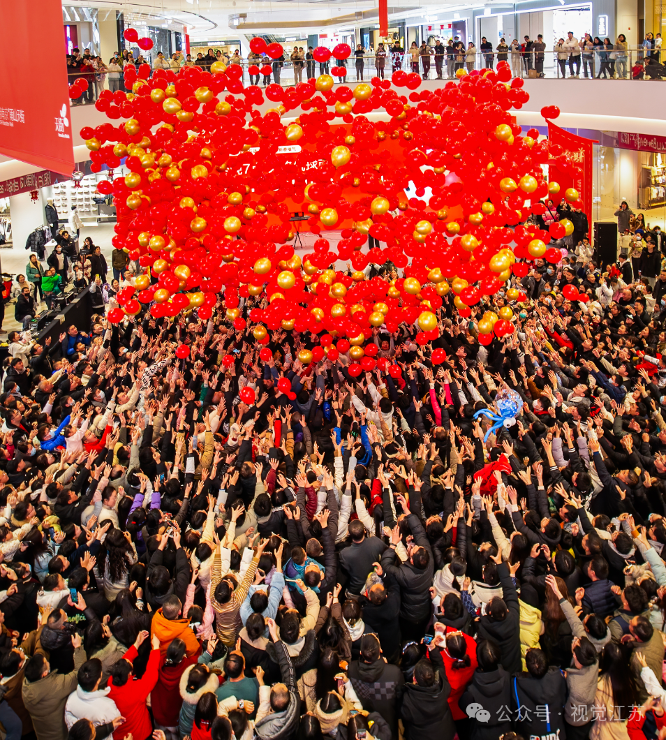 1月19日,南京市浦口区雨山天街商业区,天降气球雨,寓意鸿运当头。毛可芳摄