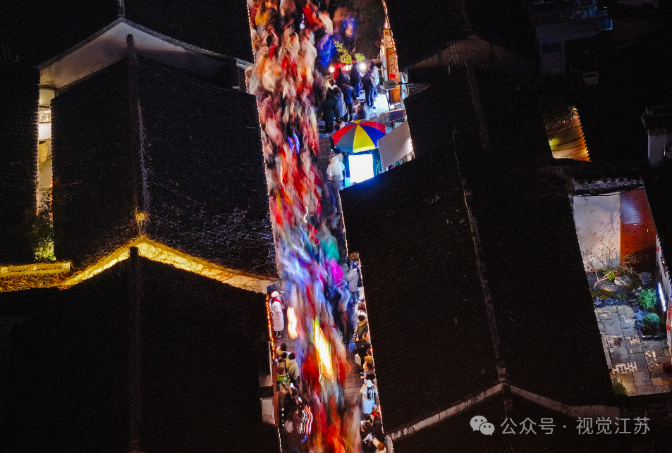 夜幕降临,彩灯闪烁。宜兴张渚舞龙表演火热进行。丁红娟 摄