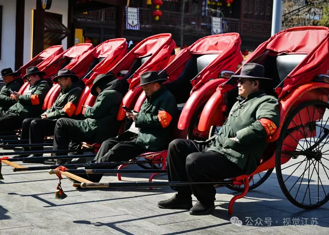 南京夫子庙,悠然小憩的黄包车师傅成为节日景区里的一道风景。姜旭潼 摄