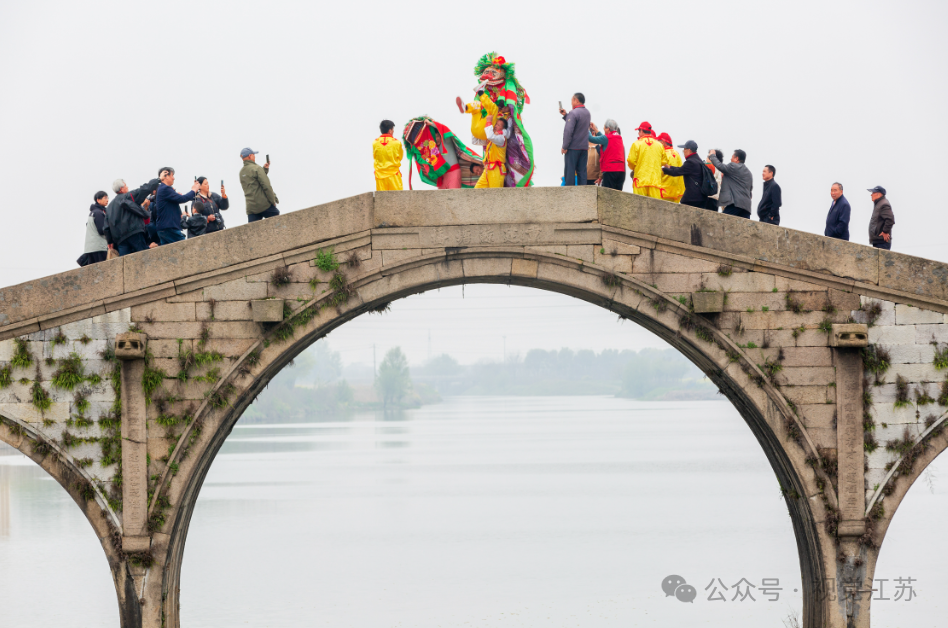 元宵佳节,宜兴徐舍鲸塘古桥上,薄雾笼罩的水面为背景,传统民俗与古桥相映成趣,尽显节日韵味。杜新良 摄