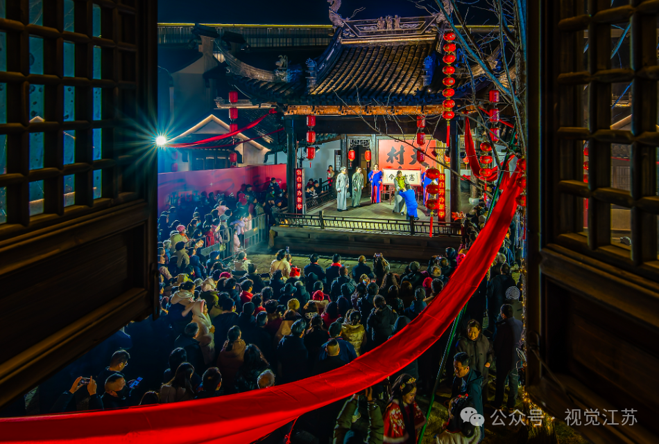 元宵节,在央视春晚无锡分会场出镜的天上村前戏台正在上演“天上村前·元宵村晚”。奚纳新 摄