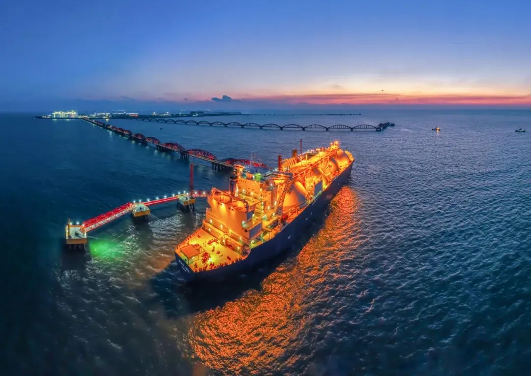 摄于江苏南通洋口港LNG基地,是国内最大海上LNG能源岛,拥有全国首个单泊位服务双接收站的创新设计,年接卸能力超千万吨,保障长三角地区能源供应安全。