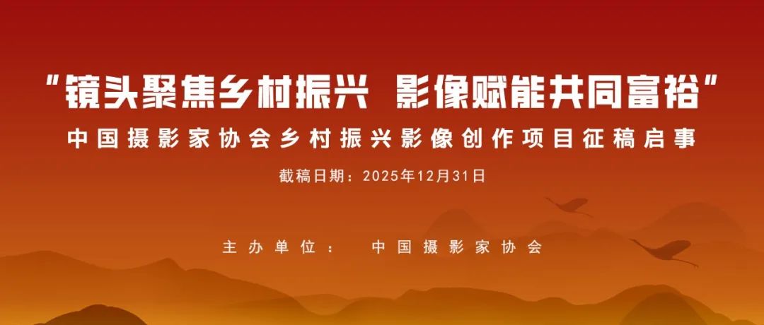 “镜头聚焦乡村振兴 影像赋能共同富裕”——中国摄影家协会乡村振兴影像创作项目为中国文联重大主题活动,由中国摄影家协会主办,拟定于2026年迎接中国共产党成立105周年之际在京举办大型摄影展览。本项目面向全国征稿,诚邀广大摄影家、摄影爱好者积极参与。征稿期间,主办方将不定期在中国摄影家协会网站、公众号等新媒体对来稿作品择优选登。欢迎广大摄影人持续关注、积极投稿,用影像讲好乡村振兴故事,为社会留存富有时代质感的视觉文本。