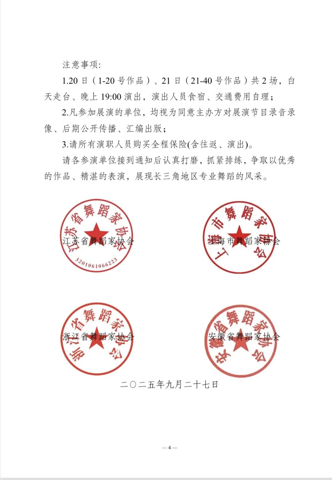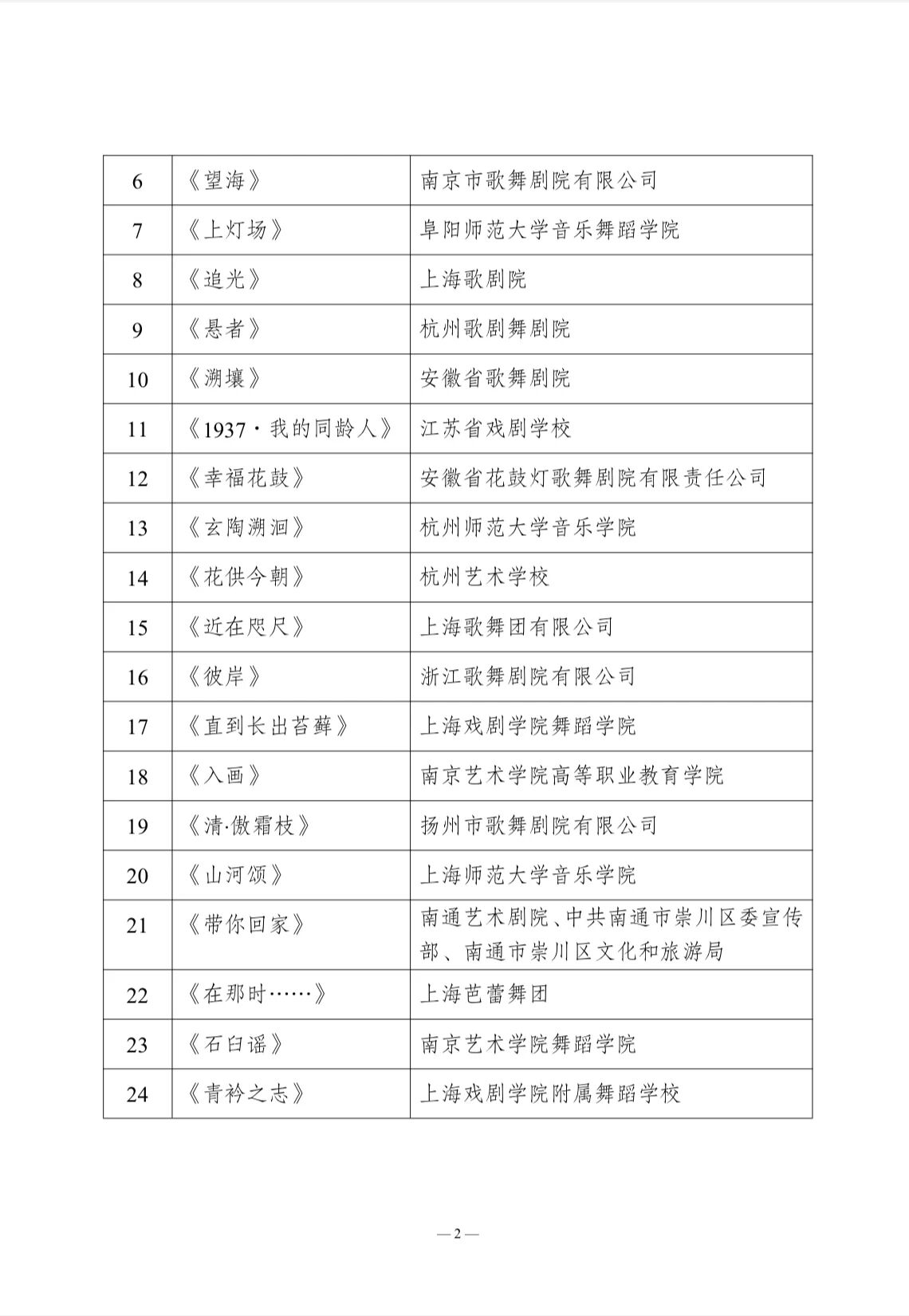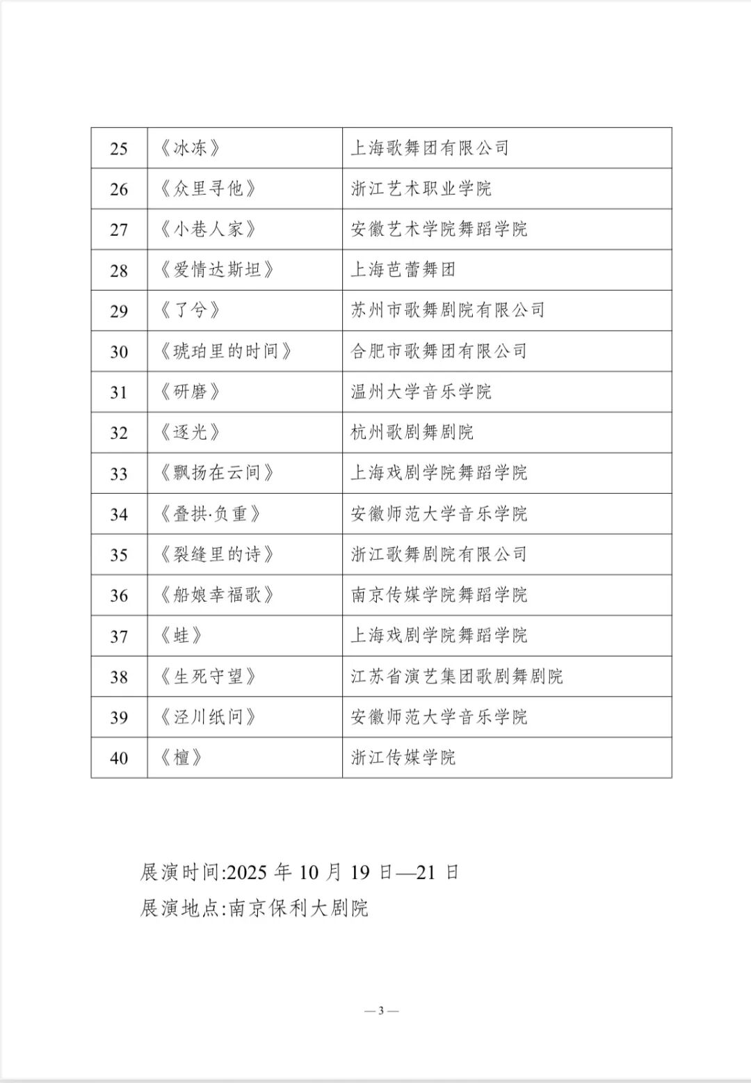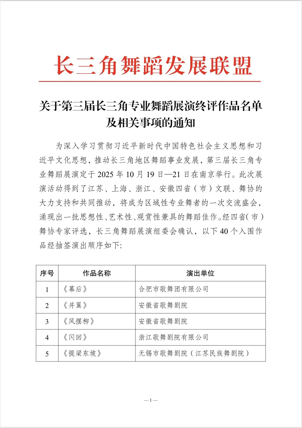 关于第三届长三角专业舞蹈展演终评作品名单及相关事项的通知