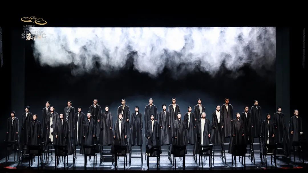 在人类学视域下,祭奠行为不仅是哀悼,更是对集体记忆的仪式化保存。原版《春之祭》中的少女献祭,到江苏大剧院版以林风眠、徐悲鸿等艺术家的留法经历为核心,将“祭奠”转化为对历史创伤的追忆。舞台上的行李箱、汽笛、飞鸟等意象,成为文化迁徙的隐喻,暗喻着20世纪中国艺术家在现代化进程中所经历的“精神献祭”——在传统与异质文化中寻找新生。“呜——”汽笛声伴随着蒸汽,上世纪留洋艺术家轮渡欧洲,追寻艺术理想,满怀憧憬闯入艺术天地;“祭奠与新生”中同样的汽笛声,时代落幕,他们背对着观众,亦是与我们一样与之告别,共同凝望着狂欢后归于沉寂的那个时代与时代留下的“作品”。
