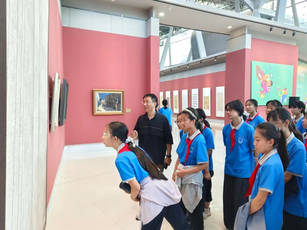 为厚植学生文化自信,提升艺术素养,近日,宁海中学分校副校长还庆红带领该校学生代表走进江苏省现代美术馆,沉浸式导览观看“笔墨春风正少年——江苏省第一届中小学生书画作品展”,在笔墨丹青间感受少年艺术风采与传统文化魅力。