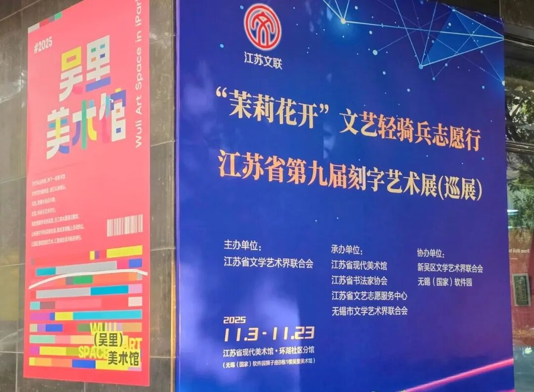 在江苏省文联的指导下,2024年江苏省现代美术馆率先在全省设立13家村级美术馆分馆,2025年在全省又新设立33家村级美术馆分馆。“江苏省第九届刻字艺术展”是江苏省现代美术馆在环湖社区分馆的首展,展览由江苏省文联主办,江苏省现代美术馆、江苏省书法家协会、江苏省文艺志愿服务中心、无锡市文联联合承办。