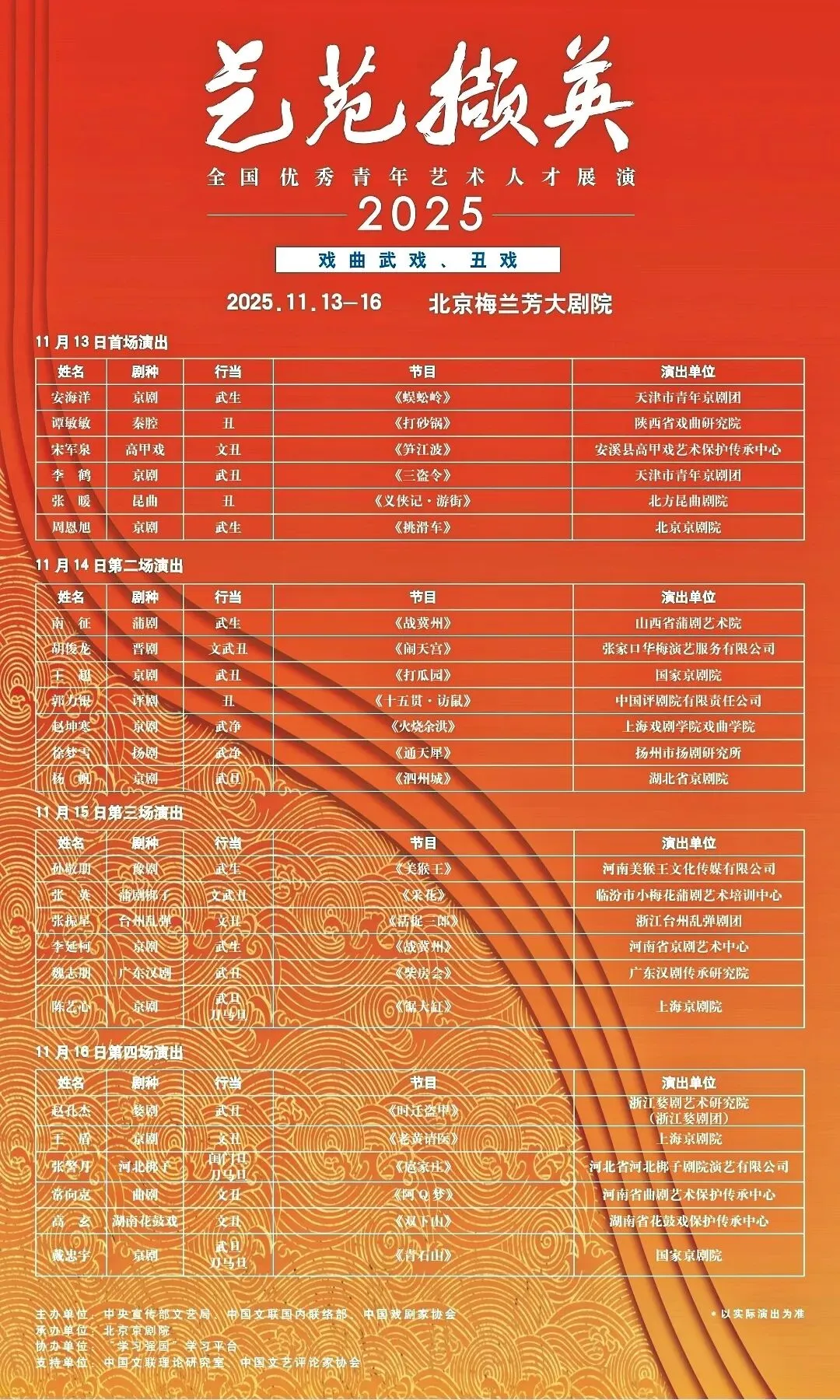 据悉,“艺苑撷英——2025年全国优秀青年艺术人才(戏曲武戏、丑戏)展演”将持续至11月16日,汇聚全国多地优秀青年戏曲演员,为观众呈现一场精彩纷呈的戏曲文化盛宴。徐梦雪的此次参演,不仅为扬剧赢得了更多关注,也为地方戏曲的全国化传播搭建了重要桥梁。