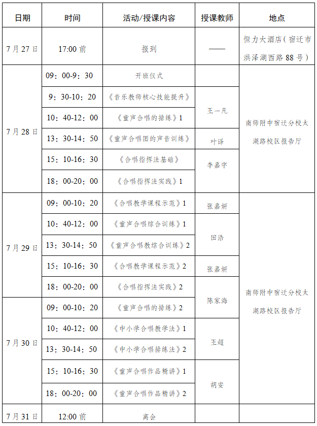 为进一步学习习近平新时代中国特色社会主义思想,贯彻党的二十大和二十届二中、三中全会精神,落实江苏省委宣传部、江苏省文联“文艺赋能乡村振兴”工作要求,提升乡村中小学音乐教师暨基层合唱指挥教学技能,推动我省合唱事业健康发展,江苏省音协将于2025年7月27日至31日在江苏宿迁举办第七届紫金合唱季重要板块活动之一“茉莉花开”江苏省乡村中小学音乐教师暨基层合唱指挥培训班,现将具体事项通知如下: