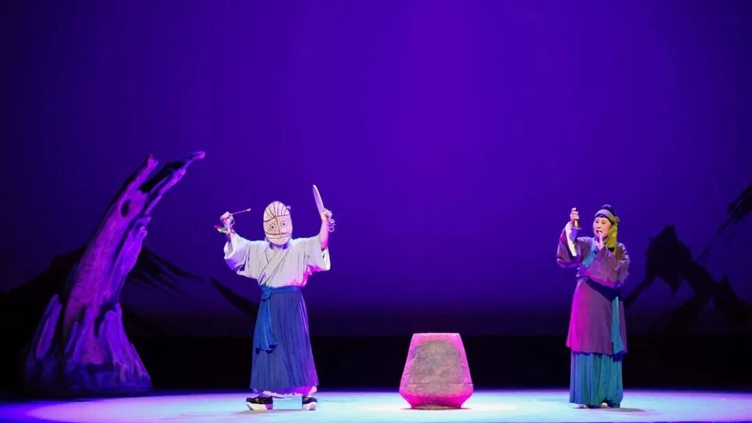 以《西游记》文化为根基的海州童子戏《白骨夫人》,融合白虎岭传说与海州民间故事,讲述少女白荻于灾荒战乱中历经生死磨难,最终化身白骨夫人守护亲人的悲剧故事。该剧既传承海州童子戏原生态的巫祝元素,又吸纳海州五大宫调的说唱特色,以“上山”“觅食”“招魂”“咬鸡”四出戏为载体,深入探究“人与命运”抗争这一核心母题。