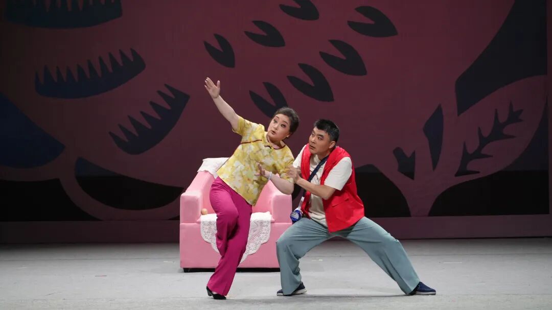 《我的亲家管得宽》虽然是一部现代戏,但人物行当的基因仍在。剧中那位爱管闲事、热心又有点固执的“管得宽”,其表演融入不少淮剧丑行的表演元素——夸张的面部表情、灵活的身段、幽默诙谐的台步,喜剧效果十足。演员的唱念做表,构成淮味浓厚的完整戏曲表演体系。