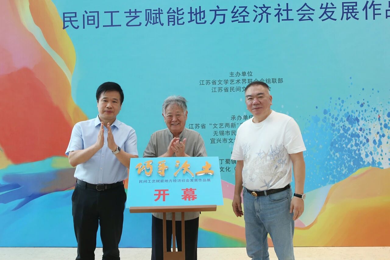 9月10日上午,“巧手沃土——民间工艺赋能地方经济社会发展作品展”在宜兴市丁蜀镇文化中心隆重开幕。活动由江苏省文联组联部、江苏省民协主办,江苏省“文艺两新”实践基地(宜兴丁蜀)、无锡市民协、宜兴市文联共同承办。江苏省文联党组成员、书记处书记何超,中国工艺美术大师徐秀棠、季益顺,省文联组联部副主任王晓春,省民协副主席史小明,无锡市民协、宜兴市文联负责人等出席开幕式。开幕式由省民协副秘书长唐华伟主持。