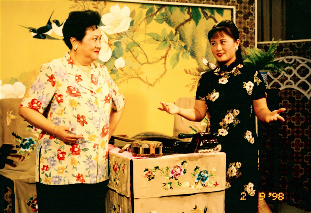 和恩师蒋云仙为中央电视台录制100回《欢喜姻缘》