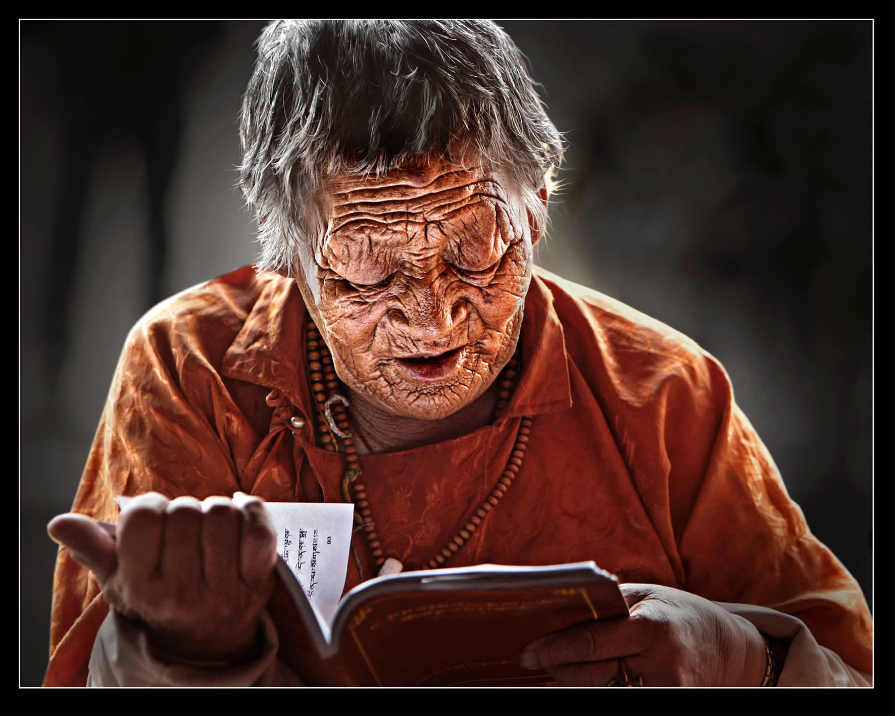 这些作品之所以能得到公众的赞许,我认为主要是因为作者注意刻画了这些天界子民的性格特征,尤其是精心表现了每个人物鲜明的个性,这是人物摄影高低成败的关键。我国明清时期文学评论家金圣叹在评论经典名著《水浒传》时,赞扬本书“写一百八个人性格,真是一百八样”,他又批评有些书“任他写一千个人,也只是一样”。现在我们反观杨天民的这些高原人物肖像,不论是饱经风霜的老人,还是牦牛般粗犷的汉子,也不论是虔诚的佛教徒,还是稚气十足的后生…… 他们都是一人有一人的性格,所以耐看、经看。