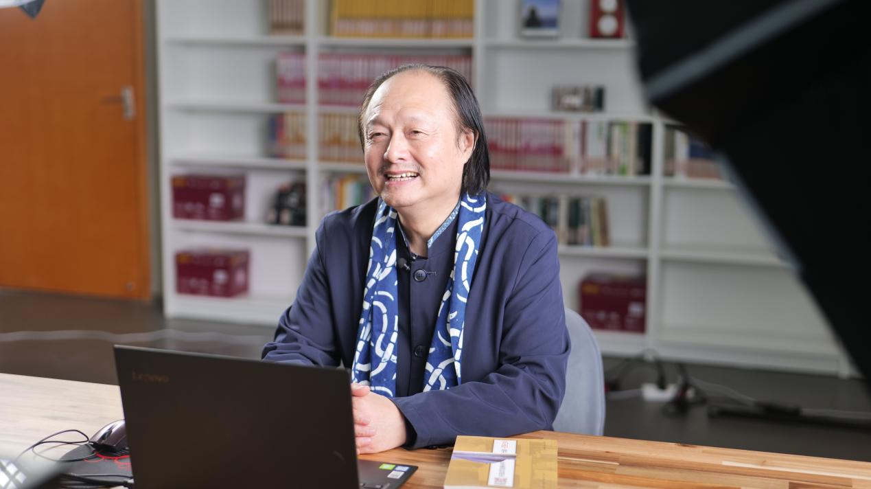 南通蓝印花布博物馆馆长吴元新在直播间