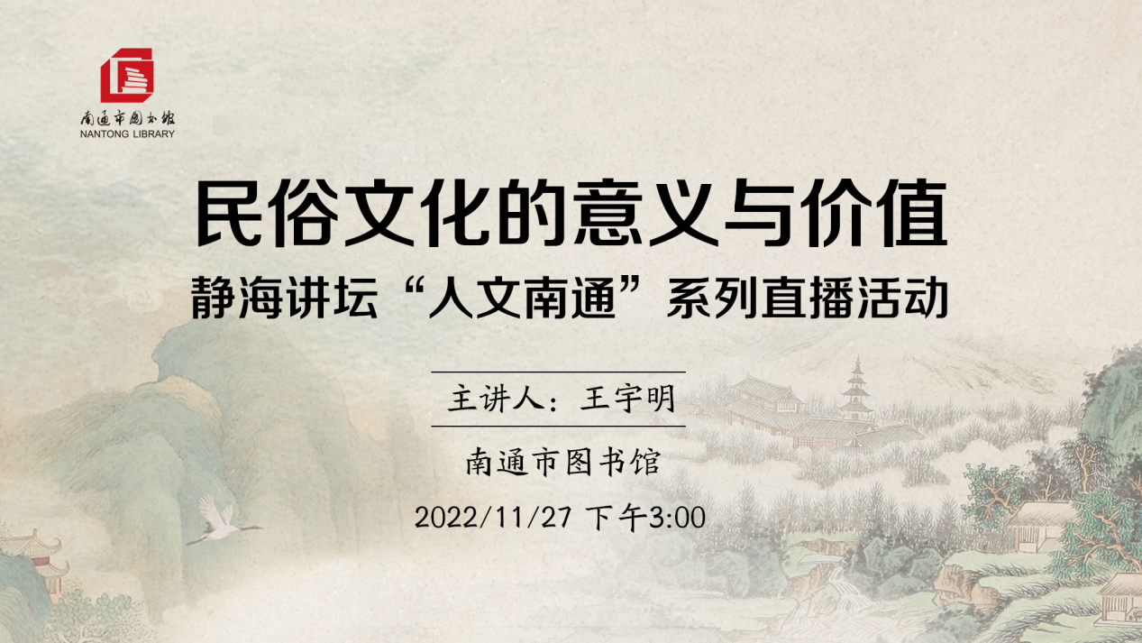 学习非遗艺术之美,品读民俗文化之情。11月27日下午,静海讲坛“人文南通”系列活动于南通市图书馆直播大厅通过云端直播形式举行。本次“人文南通”系列直播共计两场,时长约2小时,共获得4万多次点赞,观众总数达 1584人次,直播过程中还抽取多位点赞评论积极的幸运观众,赠送专家作品集。
