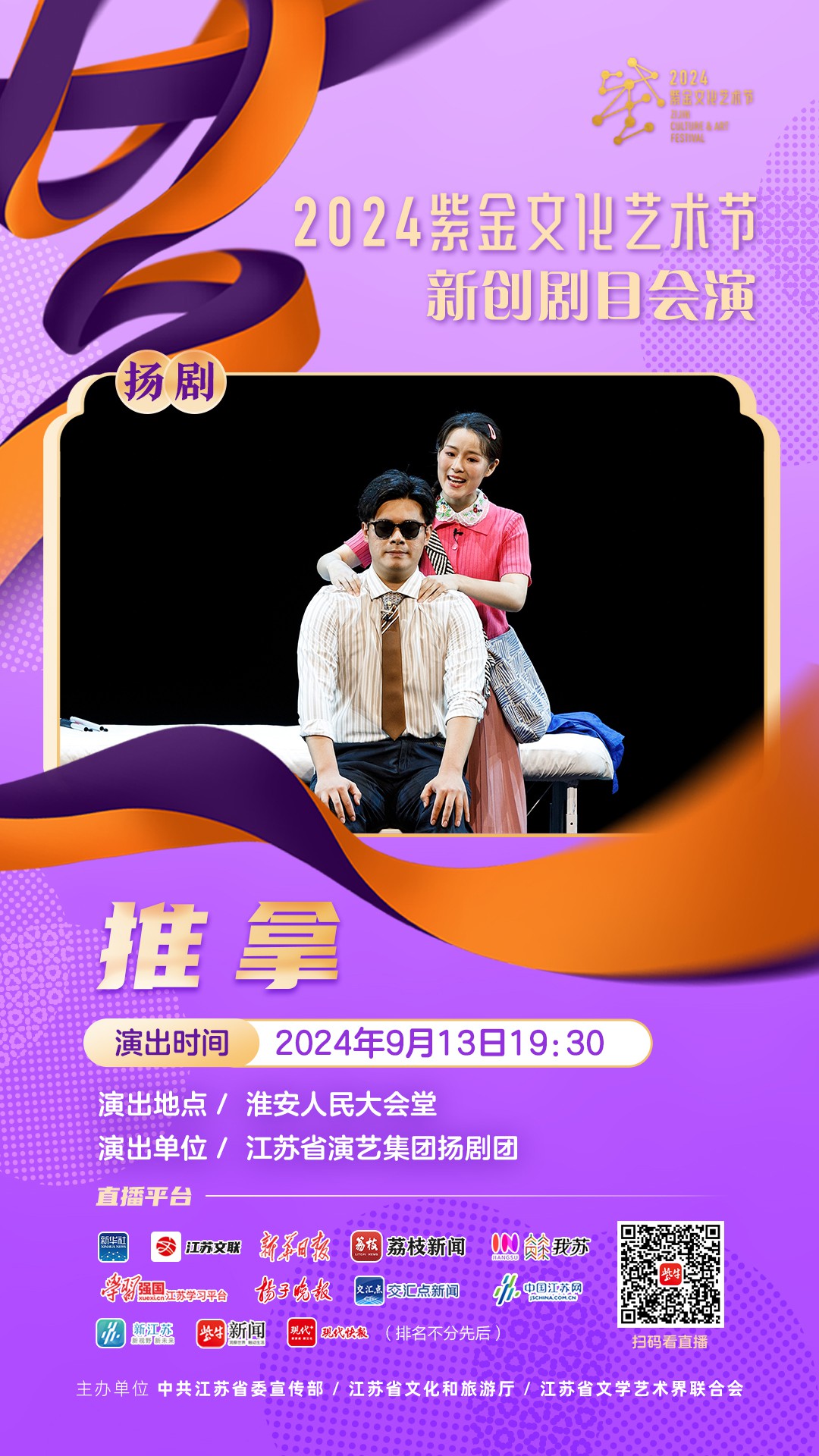 一群盲人推拿师,在黑暗的世界中,会面临哪些来自内心、家庭和社会的挑战?他们之间又会产生怎样的爱恨纠葛?2024紫金文化艺术节新创剧目,改编自毕飞宇同名小说的大型现代扬剧《推拿》,将于9月13日19:30在淮安人民大会堂上演。