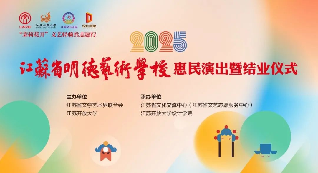 盛夏金陵,惠风和畅;艺韵悠扬,文脉传薪。为深入学习贯彻习近平文化思想,进一步完善优质文艺资源直达基层机制,由江苏省文学艺术界联合会、江苏开放大学主办,江苏省文化交流中心(江苏省文艺志愿服务中心)、江苏开放大学设计学院承办的江苏省明德艺术学校惠民演出暨结业仪式将于7月27日晚7点举行,不见不散!